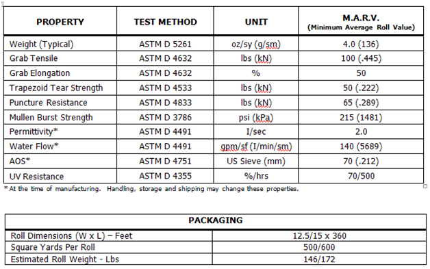 Mirafi 140n 4oz Non Woven Fabric Road Fabrics Inc